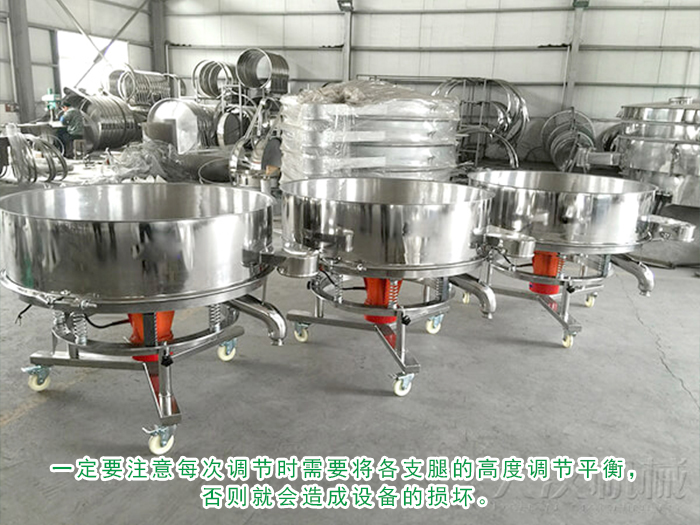 由于大多數(shù)客戶在購(gòu)買(mǎi)高頻振動(dòng)篩時(shí),都要求將支架設(shè)計(jì)成可調(diào)節(jié)高度,因此客戶在使用現(xiàn)場(chǎng)調(diào)節(jié)支架高度時(shí)一定要注意每次調(diào)節(jié)時(shí)需要將各支腿的高度調(diào)節(jié)平衡,否則就會(huì)造成設(shè)備的損壞。