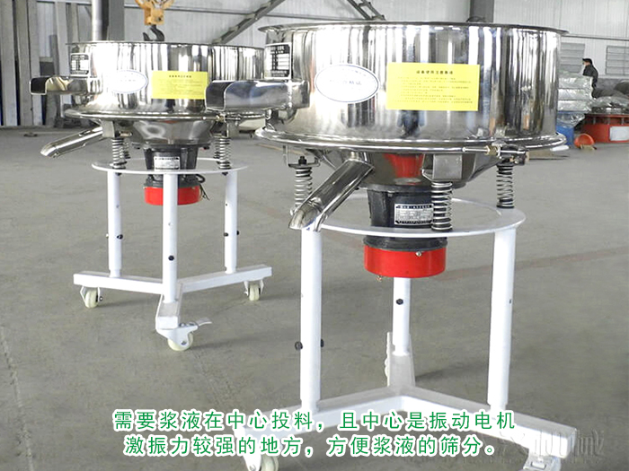 由于漿液具有一定的粘性,流動(dòng)性非常不好,因此需要漿液在中心投料,且中心是振動(dòng)電機(jī)激振力較強(qiáng)的地方,方便漿液的篩分。