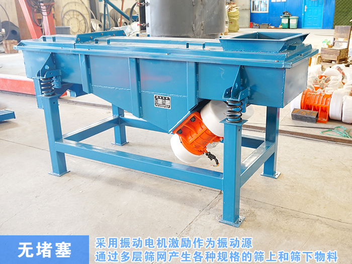 直線振動篩采用振動電機(jī)激勵作為振動源,使物料在篩網(wǎng)上拋起,同時直線前進(jìn)。物料從進(jìn)料器均勻進(jìn)入篩選機(jī)進(jìn)料口,通過多層篩網(wǎng)產(chǎn)生各種規(guī)格的篩上和篩下物料,分別從各自的出口排出,不存在堵塞現(xiàn)象,產(chǎn)量高。