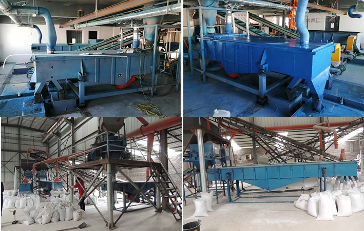 塑料顆粒通過輸送帶進入多層直線篩設備,由于電機激振力和自身重力的雙重作用,塑料顆粒沿直線篩面直線跳躍,上層塑料顆粒在上排料口被篩出,而小于篩網(wǎng)目數(shù)的塑料顆粒進入下部篩網(wǎng),仍沿同一物料運動軌跡。經(jīng)過三層篩網(wǎng)后,塑料顆粒分為大于2.5mm塑料顆粒、2.5mm-1.4mm塑料顆粒、1.4mm-80目塑料顆粒、小于80目塑料顆粒等四種規(guī)格的材料,還可根據(jù)要求選擇6層不通目數(shù)的篩網(wǎng),以實現(xiàn)要求的分級效果。