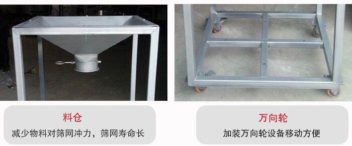 移動(dòng)式振動(dòng)篩又叫振動(dòng)篩料倉一體機(jī),底部加裝萬向輪,可360度旋轉(zhuǎn)移動(dòng),主要應(yīng)用于篩分場(chǎng)所不固定的環(huán)境,便于用戶移動(dòng),滿足不同地點(diǎn)的工作需要。通過調(diào)節(jié)料倉中的蝶閥從而控制物料進(jìn)入振動(dòng)篩的流量,然后振動(dòng)篩進(jìn)行篩分作業(yè),本品的特點(diǎn)間歇性加料,不用工人不間斷投料節(jié)省人工,蝶閥控制流量大小能提高篩分精度。