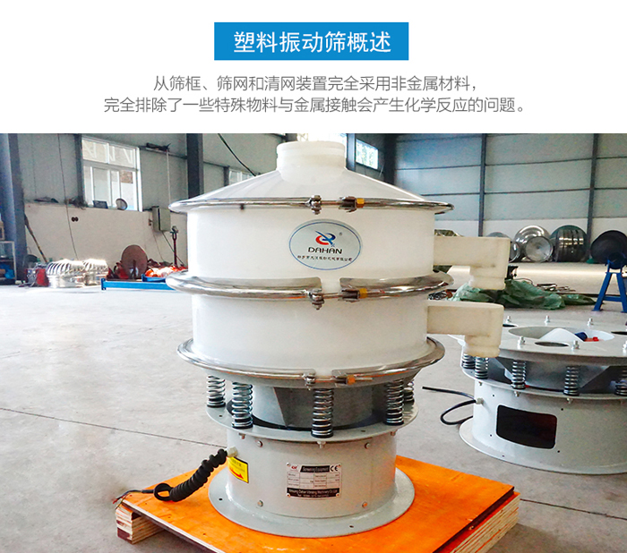 塑料振動篩也叫聚丙烯振動篩,塑料振動篩主要是為了解決篩分物料與金屬接觸而產(chǎn)生化學(xué)反應(yīng)的問題。聚丙烯振動篩:從篩框、篩網(wǎng)和清網(wǎng)裝置完全采用非金屬材料,完全排除了一些特殊物料與金屬接觸會產(chǎn)生化學(xué)反應(yīng)的問題。