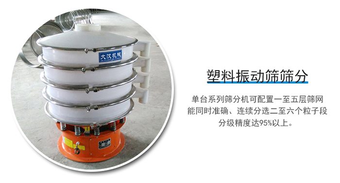 塑料振動篩區(qū)別與不銹鋼材質(zhì)振動篩,就是耐腐蝕性比不銹鋼振動篩要好,篩分就是把固體顆粒分成大小相等的不同粒子組。單臺系列篩分機(jī)可配置一至五層篩網(wǎng),能同時準(zhǔn)確、連續(xù)分選二至六個粒子段;分級精度達(dá)95%以上。
