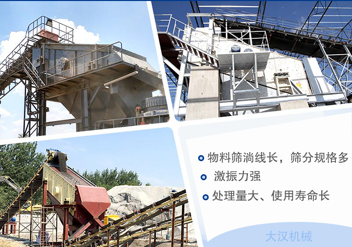 優(yōu)勢:物料篩淌線長,篩分規(guī)格多;采用偏心塊作為激振力,激振力強;篩子橫梁與篩箱采用高強度螺栓聯(lián)接,結(jié)構(gòu)簡單,維修方便快捷;采用小振幅、高頻率、大傾角結(jié)構(gòu),篩分效率高、處理量大、使用壽命長、電耗低、噪音小。