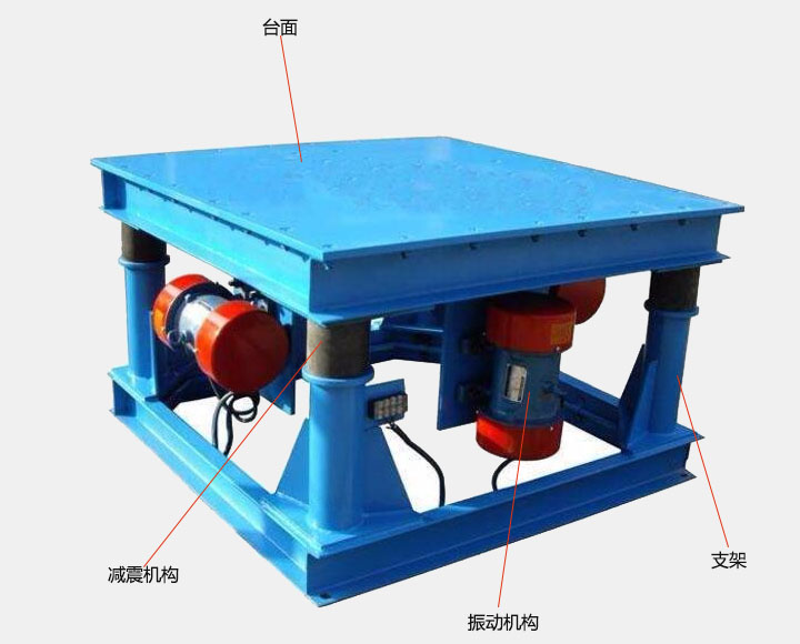 1、 高頻振動平臺主要有支架、臺面、振動機構(gòu),減震機構(gòu)四部分組成。在振動機構(gòu)的帶動下做橫向、縱向、上下等三維振動,故而得名。