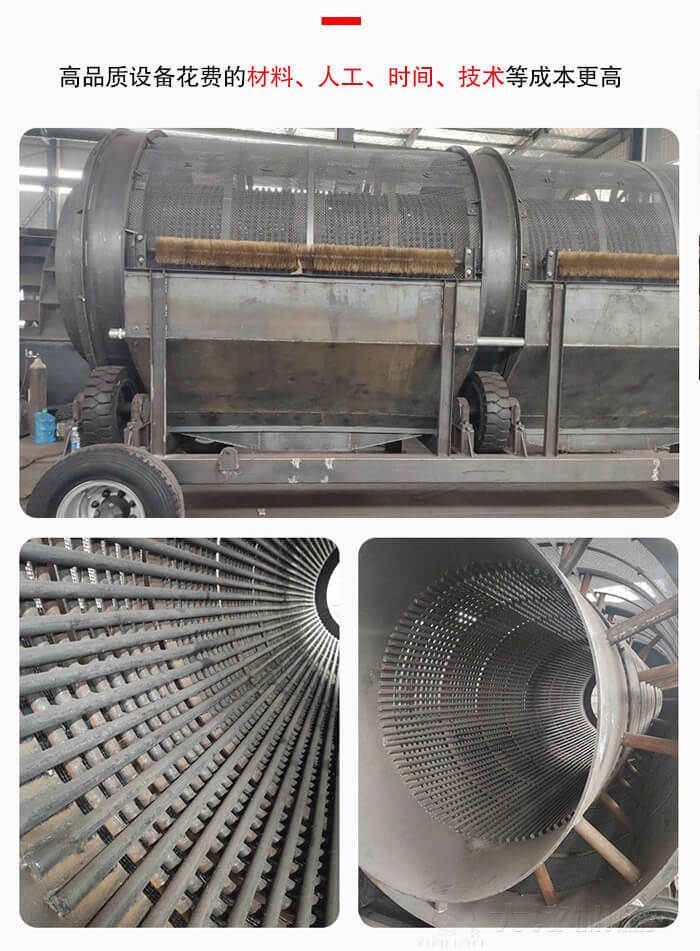 設(shè)備品質(zhì)是決定移動(dòng)滾筒篩價(jià)格的主要因素之一,質(zhì)量越好的設(shè)備做工更精細(xì),選材更用心,所以花費(fèi)的材料、人工、時(shí)間、技術(shù)等成本更高,其市場價(jià)格則會(huì)更高,成本自然而然就更高,其價(jià)格也會(huì)更貴,但是后期使用中效果(包括、、產(chǎn)量等方面優(yōu)勢)也會(huì)更顯著,帶給用戶的利潤價(jià)值更高。